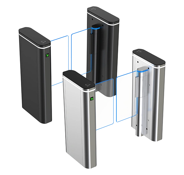 The ID GATE 5800 is a modern security gate for efficient access control in demanding indoor environments. It is ideally suited for locations with high foot traffic such as corporate headquarters, gyms, or public facilities, providing maximum security and efficiency through its intelligent sensors and robust construction.